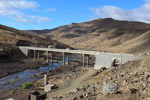 Taking place in a very remote site at 230km from the capital Maseru, this project was awarded by the Lesotho Ministry of Public Works & Transports (Roads Directorate). Geoquest South Africa was in charge of designing and supplying RE materials for the two Reinforced Earth® abutments.